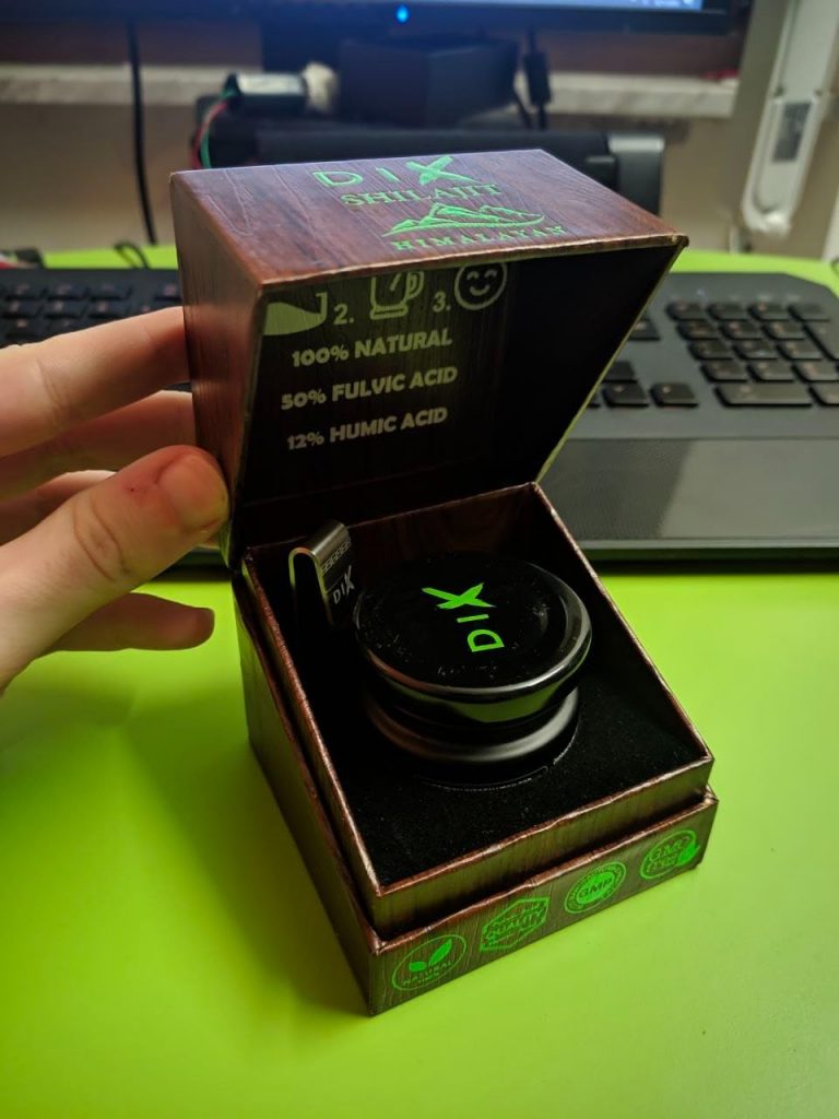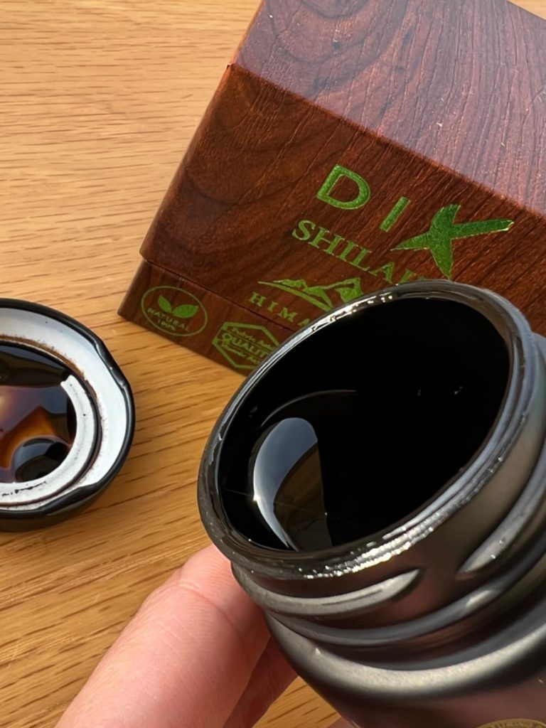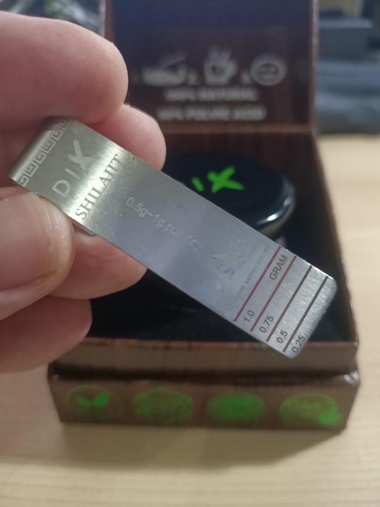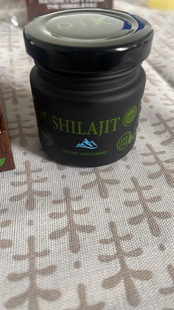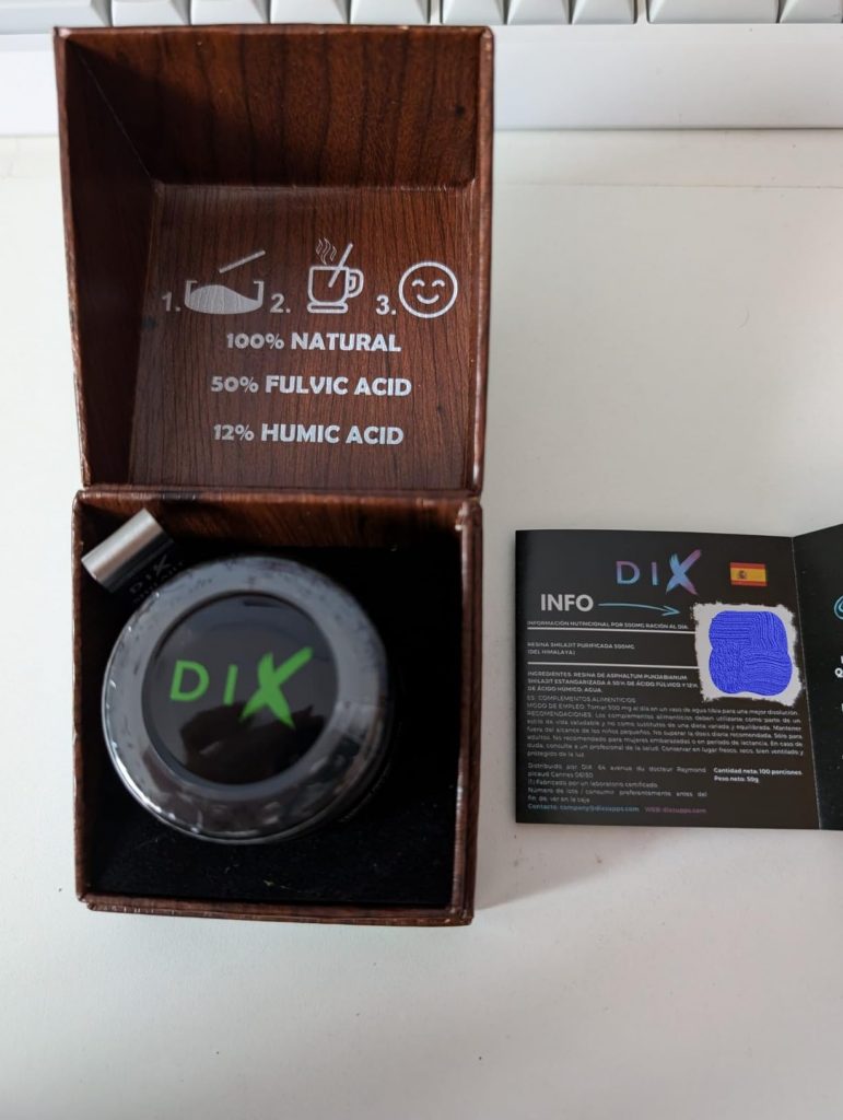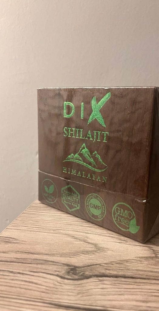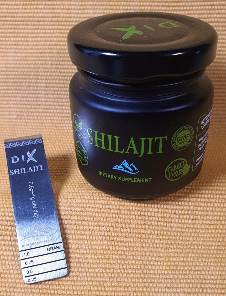 Le shilajit est une résine provenant des montagnes de l’Himalaya, pleine de minéraux et d’oligo-éléments. Il aide donc à booster notre système immunitaire. Ce shilajit est proposé dans un petit coffret pratique pour le transport, avec un doseur que l’on peut accrocher à sa tasse de thé. Il se dissout facilement et colore la boisson. Comme conseillé, je le prends à 0,5 grammes et je n’ai rencontré aucun problème. C’est une marque de Cannes.