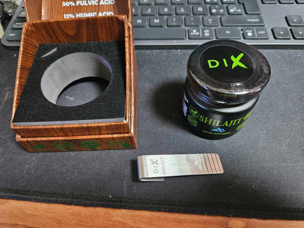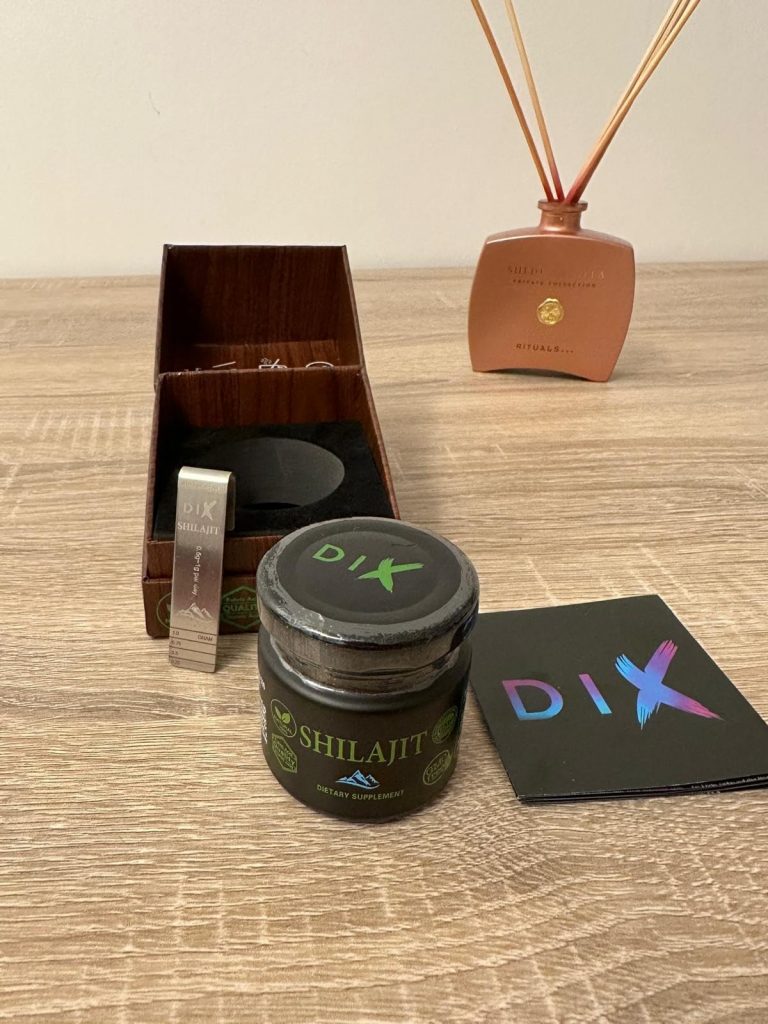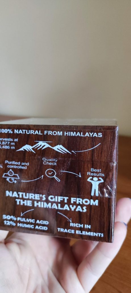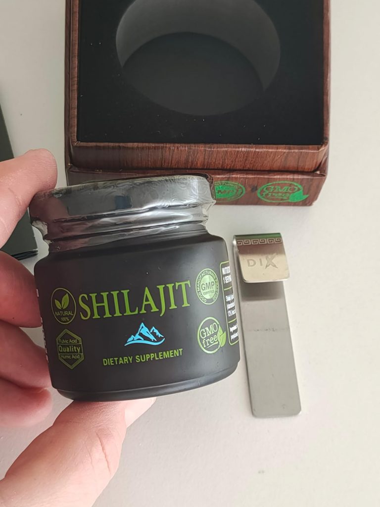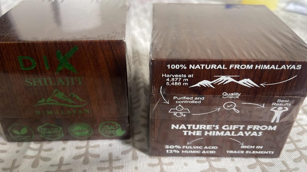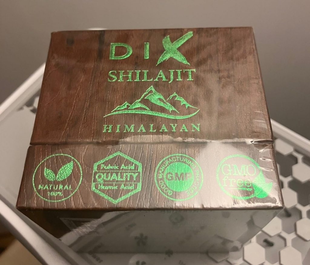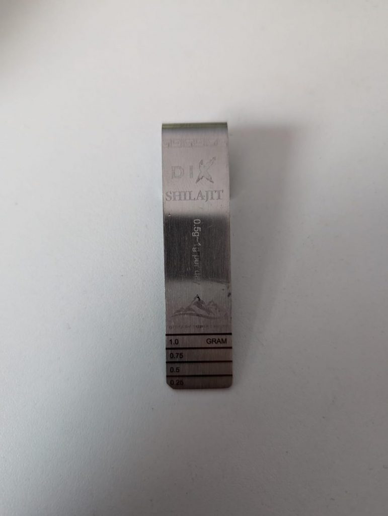 Le shilajit est une résine provenant des montagnes de l’Himalaya, pleine de minéraux et d’oligo-éléments. Il aide donc à booster notre système immunitaire. Ce shilajit est proposé dans un petit coffret pratique pour le transport, avec un doseur que l’on peut accrocher à sa tasse de thé. Il se dissout facilement et colore la boisson. Comme conseillé, je le prends à 0,5 grammes et je n’ai rencontré aucun problème. C’est une marque de Cannes.