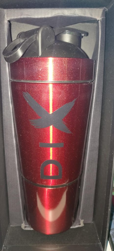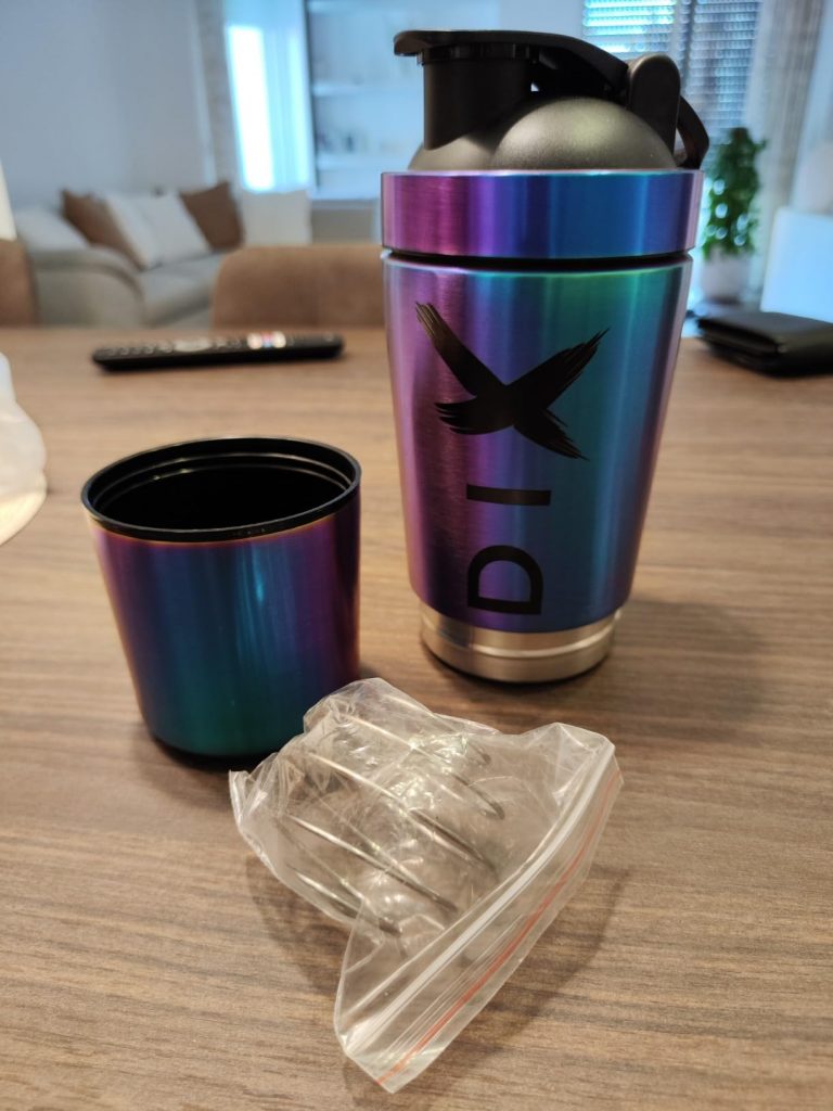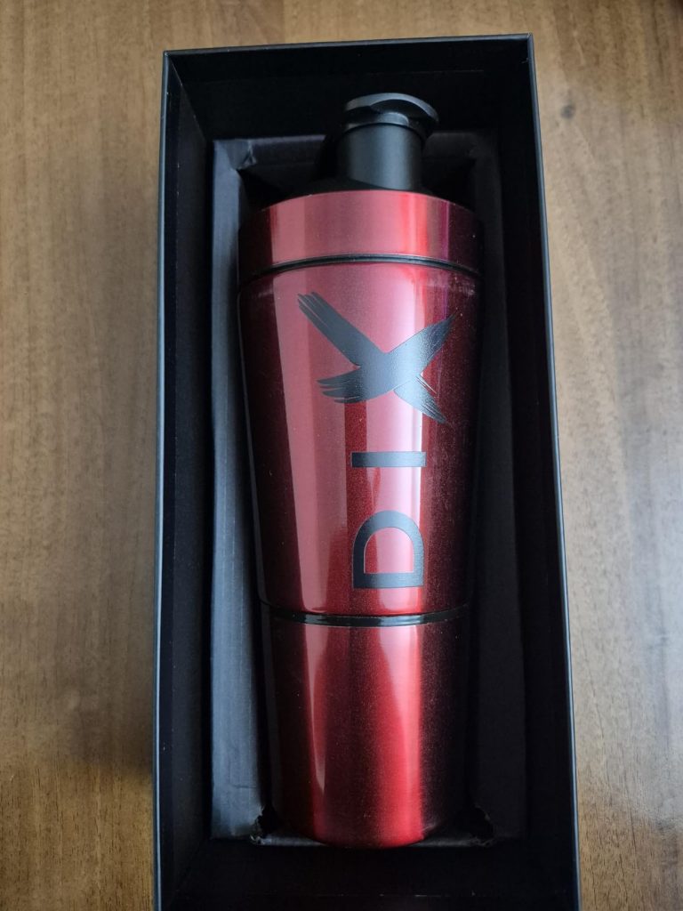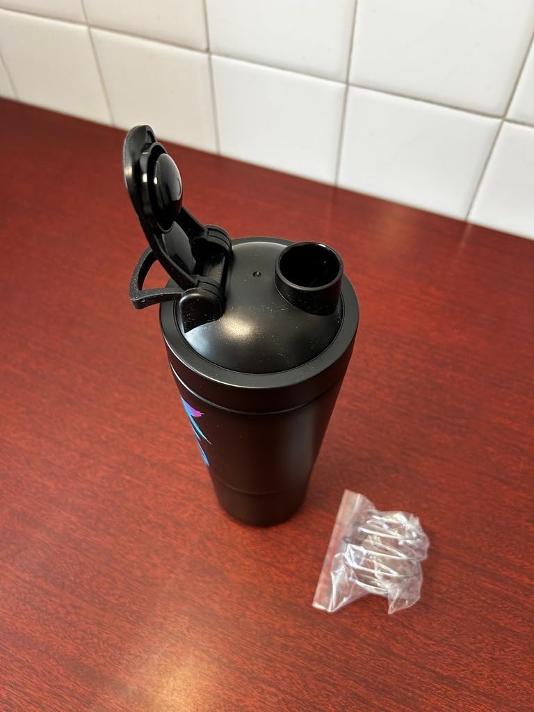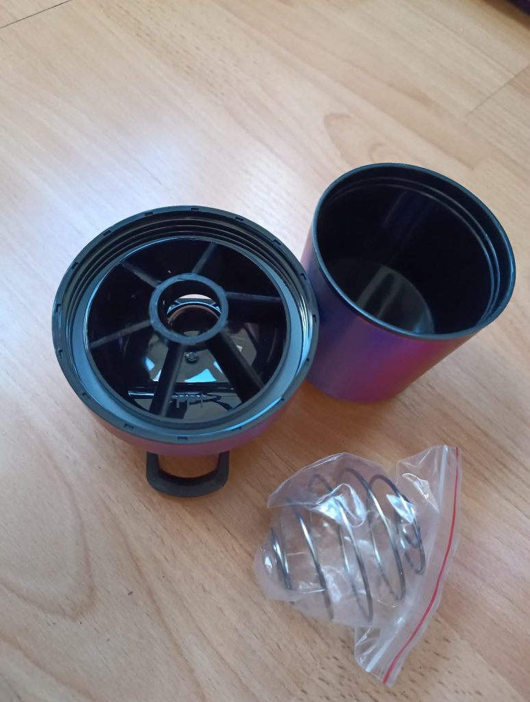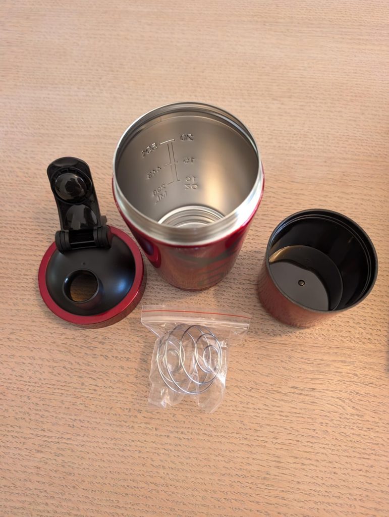Un shaker vraiment joli ! Il est très bien présenté et inclusif, avec un compartiment vissé et une boule qui, après utilisation, s’avère très efficace pour un bon mélange. On constate tout de suite que la qualité est au rendez-vous : l’acier inoxydable est bien rigide, contrairement à d’autres modèles concurrents qui se déforment facilement. Je recommande ce shaker à ceux qui veulent prendre leur protéine juste après l’entraînement, il fait parfaitement son job.