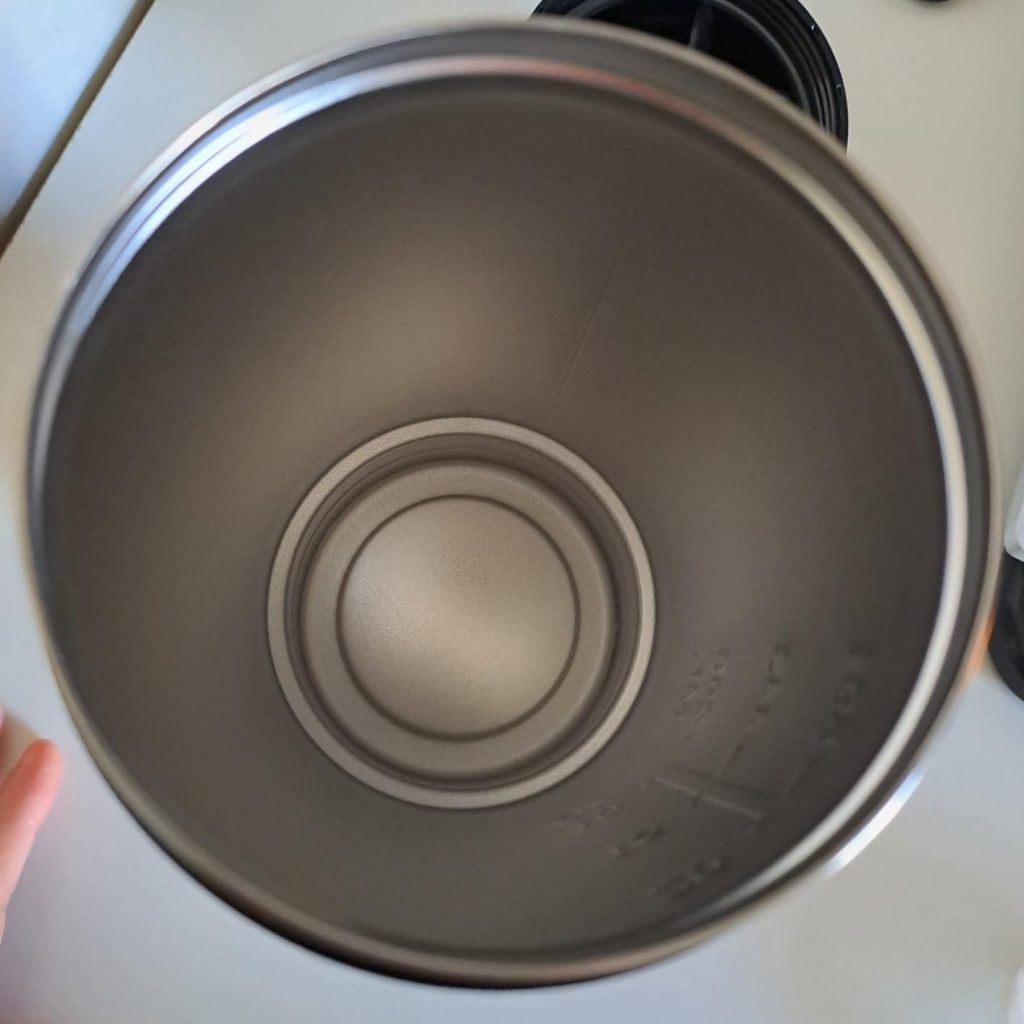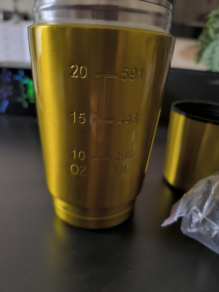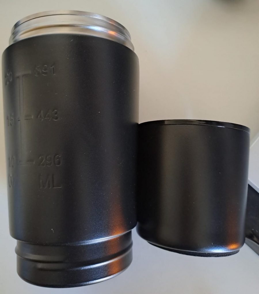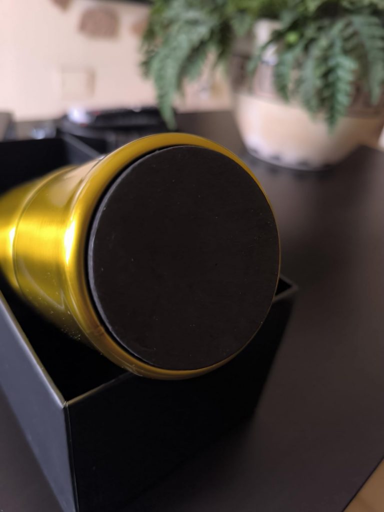 Le shaker en acier inoxydable remplit parfaitement son rôle. Son design doré avec des inscriptions noires le rend vraiment élégant. Il possède un compartiment pour une dose de protéines supplémentaire et un réservoir principal de 750 ml, équipé d’une boule pour éviter les grumeaux. Le couvercle, avec sa prise pratique et son mécanisme de fermeture robuste, assure une bonne étanchéité. Cependant, le modèle reçu présente quelques marques de frottement sur la surface à divers endroits, et le joint en silicone a tendance à se détacher, ce qui peut entraîner une perte. En somme, c’est un bon produit, à la fois efficace, esthétique et robuste, malgré quelques petites imperfections !