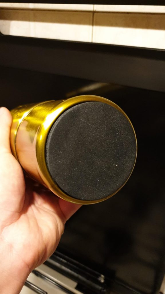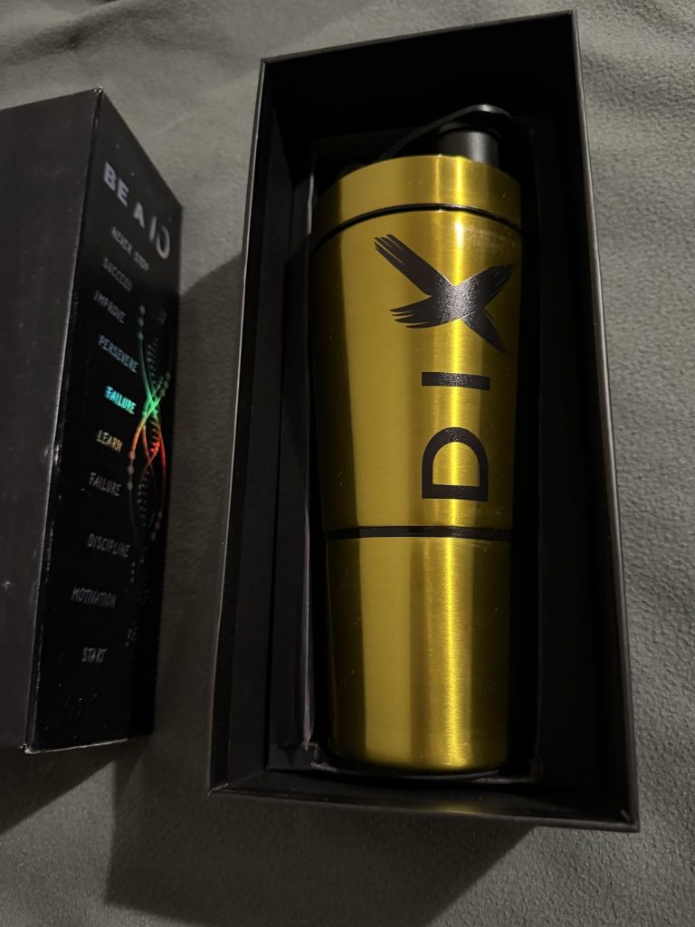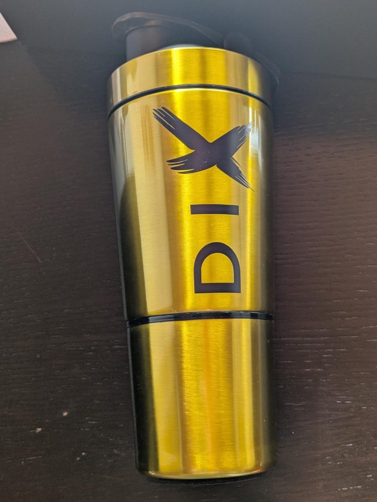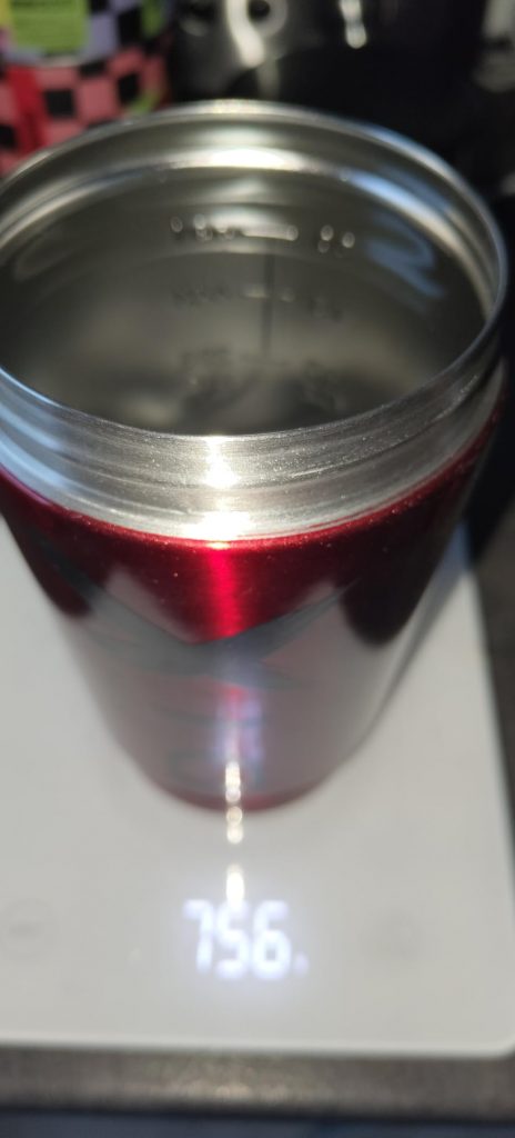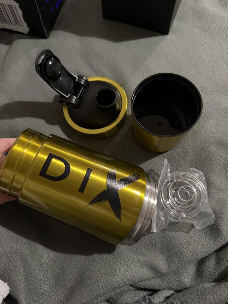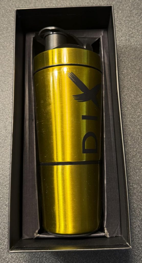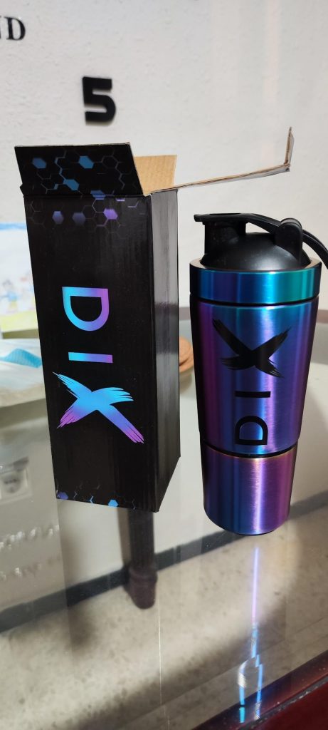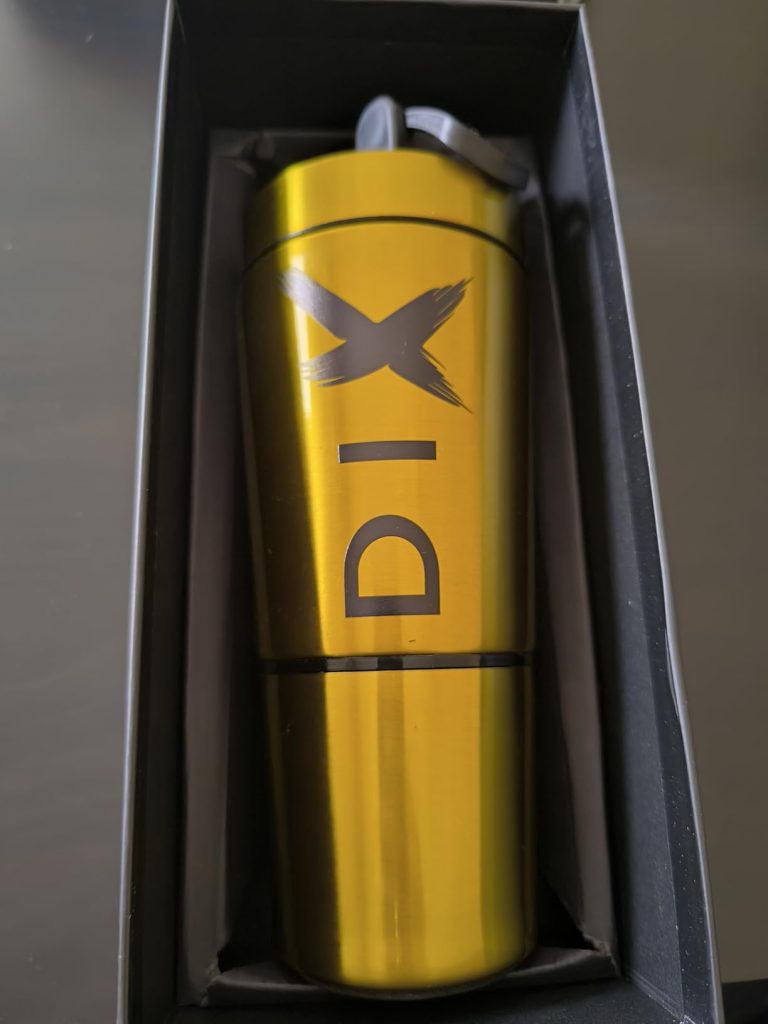Le shaker en acier inoxydable remplit parfaitement son rôle. Son design doré avec des inscriptions noires est vraiment élégant. Il dispose d’un compartiment pour une dose supplémentaire de protéine et d’un réservoir principal de 750 ml, équipé d’une boule pour éviter les grumeaux. Le couvercle a une anse pratique et un système de fermeture robuste qui assure une bonne étanchéité. Cependant, j’ai remarqué quelques marques de frottement sur la surface à certains endroits, et le joint en silicone a tendance à se défaire, ce qui peut entraîner des risques. Un produit qui est à la fois efficace, esthétique et solide, même s’il présente quelques défauts !
