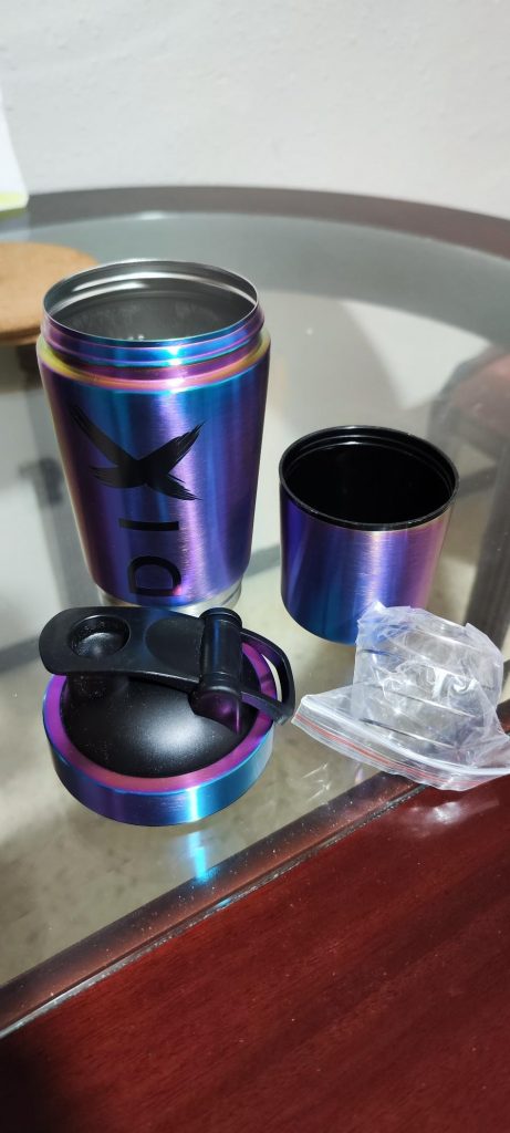 Ces shakers sont vraiment magnifiques, la couleur est splendide et l’emballage est tout aussi attrayant, ce qui en fait un excellent choix de cadeau pour les passionnés de musculation ou de sport intense ! La base est idéale pour stocker plusieurs doses de poudre énergisante, ou simplement comme gobelet. La fermeture de la verseuse est bien sécurisée, donc il faut s’assurer qu’elle soit correctement fermée avant de secouer. Le mélange est impeccable et homogène grâce à la boule spirale, et le crochet se révèle très pratique ! En résumé, ils sont à la fois esthétiques et fonctionnels, ce shaker mérite sans aucun doute cinq étoiles et je le recommande vivement !