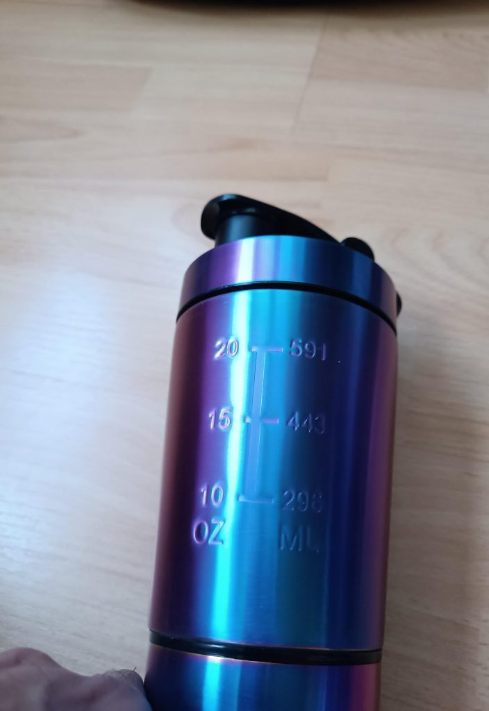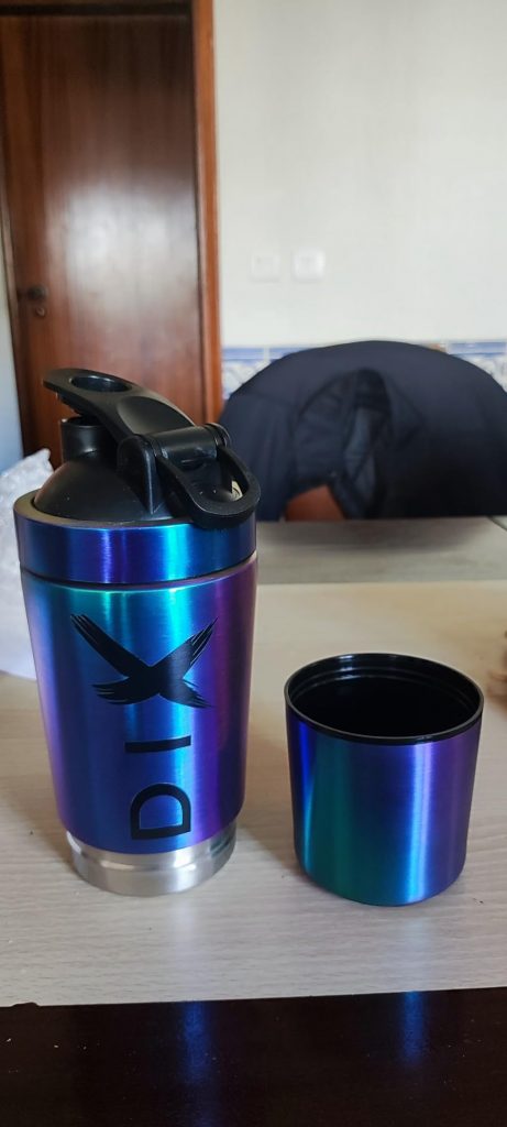 Mon fils était à la recherche d’un shaker pour ses boissons protéinées lors de ses séances d’entraînement, et nous avons déniché le shaker parfait ! Avec une capacité de 750 ml, il est idéal pour les boissons protéinées ou simplement de l’eau. Ce shaker est vraiment pratique, car le bas se dévisse pour y mettre une dose de poudre (jusqu’à 60 g), ce qui permet de le transporter en toute sécurité jusqu’au moment de préparer la boisson. Il dispose d’une petite anse qui facilite la prise en main et se ferme très bien, garantissant qu’il ne s’ouvrira pas dans le sac de sport. Fabriqué en acier inoxydable et sans BPA, il est rassurant à utiliser. La solidité de l’acier inoxydable lui permet de résister à une utilisation fréquente, ce qui est préférable au plastique. En plus, il est très esthétique avec sa belle couleur bleue irisée. Pour mon fils, c’est le shaker idéal à avoir lors de ses activités sportives.